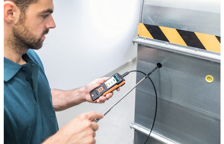 - Medidor para climatización testo 440, 3 pilas del tipo AA, cable USB y protocolo de calibración Sonda de hilo caliente (diámetro 9 mm) con cable fijo (longitud 1,7 m), incl. sens