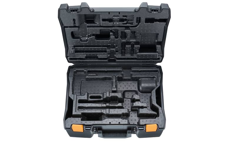 Guarde su equipamiento para la medición del nivel de confort de forma segura en el robusto maletín de transporte: El maletín con compartimentos especiales ofrece espacio de almacenamiento para el instrumento de medición adecuado (p. ej. testo 400), acceso