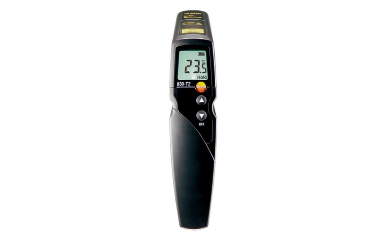 El termómetro por infrarrojos testo 830-T2 permite realizar mediciones sin contacto de la temperatura de superficies. Este pirómetro está especialmente pensado para mediciones de control en la industria y en el sector de la construcción: el diseño tipo «p