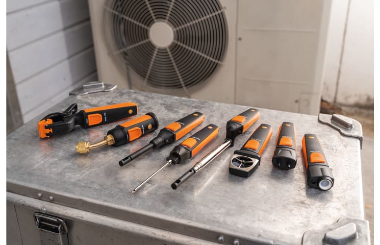 Set definitivo para todoterreno en el sector de calefacción, climatización, refrigeración y ventilación: El set contiene todos los testo Smart Probes y es ideal en combinación con su teléfono inteligente/tableta para ejecutar pruebas de funcionamiento o p