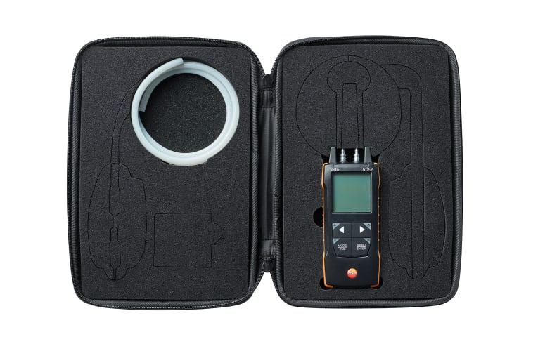 Medición de presión diferencial rápida, sencilla y precisa de, entre otras, la presión del flujo y la presión estática del gas en calderas y quemadores: así funciona el manómetro testo 512-2 que mide presiones hasta 2000 hPa. Instrumento versátil y adaptado a multitud de aplicaciones, por ejemplo la revisión de filtros y la medición de la velocidad del aire en conductos junto a un tubo Pitot en sistemas de climatización. El sensor de presión diferencial independiente de la ubicación garantiza resultados de medición fiables y altamente precisos. La App testo Smart para smartphones y tablets le permite realizar estas funciones: